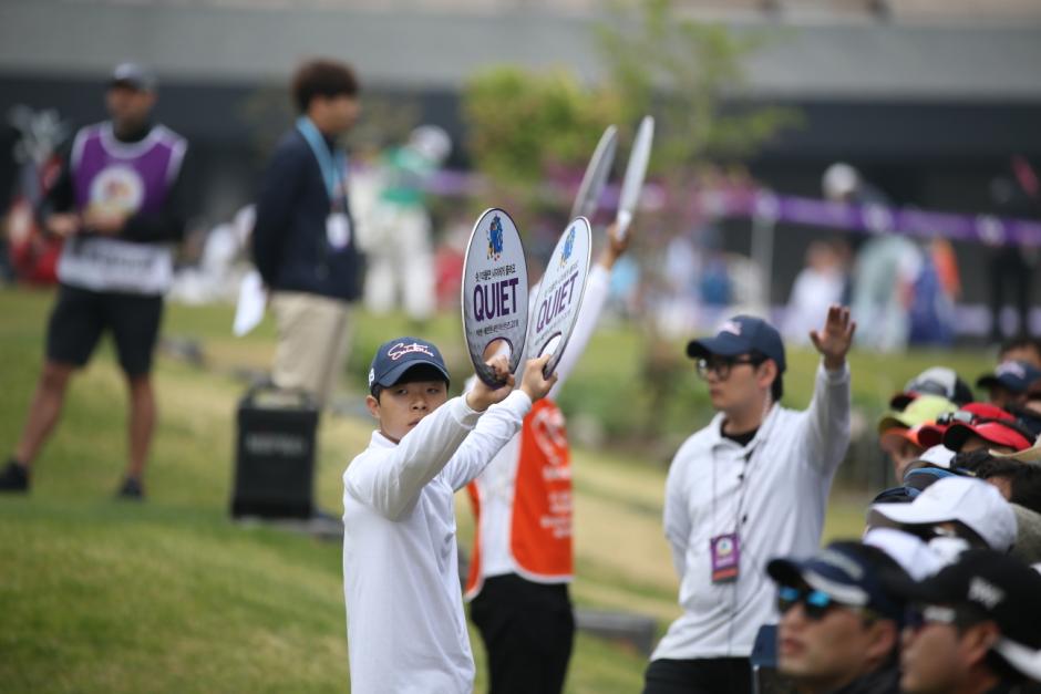 기본적으로 갤러리가 지켜야 할 것 중 가장 중요한 것이 선수들이 플레이에 집중 할 수 있게 방해하지 않고 관람하는 것인데요. 색깔있는 문화를 가진 대회가 있기도 합니다. PGA WM 피닉스 오픈이 열리는 독특한 갤러리 문화가 있는 경우도 있어요. 미국 애리조나주 TPC 스콧데일 16번홀은 대회가 시작하면 파3를 '콜로세움'처럼 애워싼 2만명 정도를 수용할 수 있는 스탠드를 만들고, 선수들이 샷을 할 때마다 갤러리가 엄청난 환호 또는 야유를 퍼붓는 특색 있는 문화를 가지고 있어요. 이런 곳에서는 'Quite'라는 팻말을 들고 있는 자원봉사자들이 있을 필요가 없겠지요.