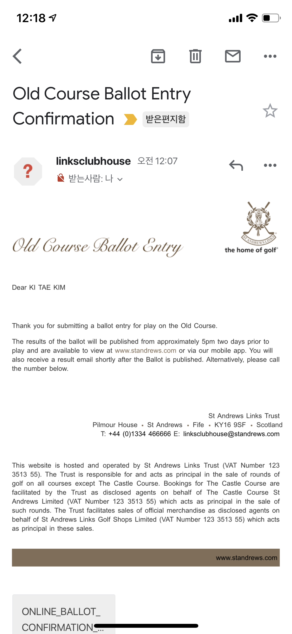 지난해 알려드린대로 올드 코스 라운드를 하려면