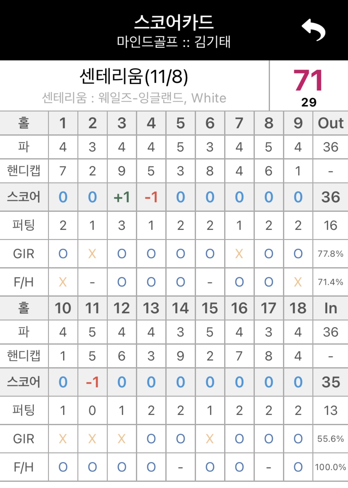 오늘도 기분 좋게 언더파 했네요.