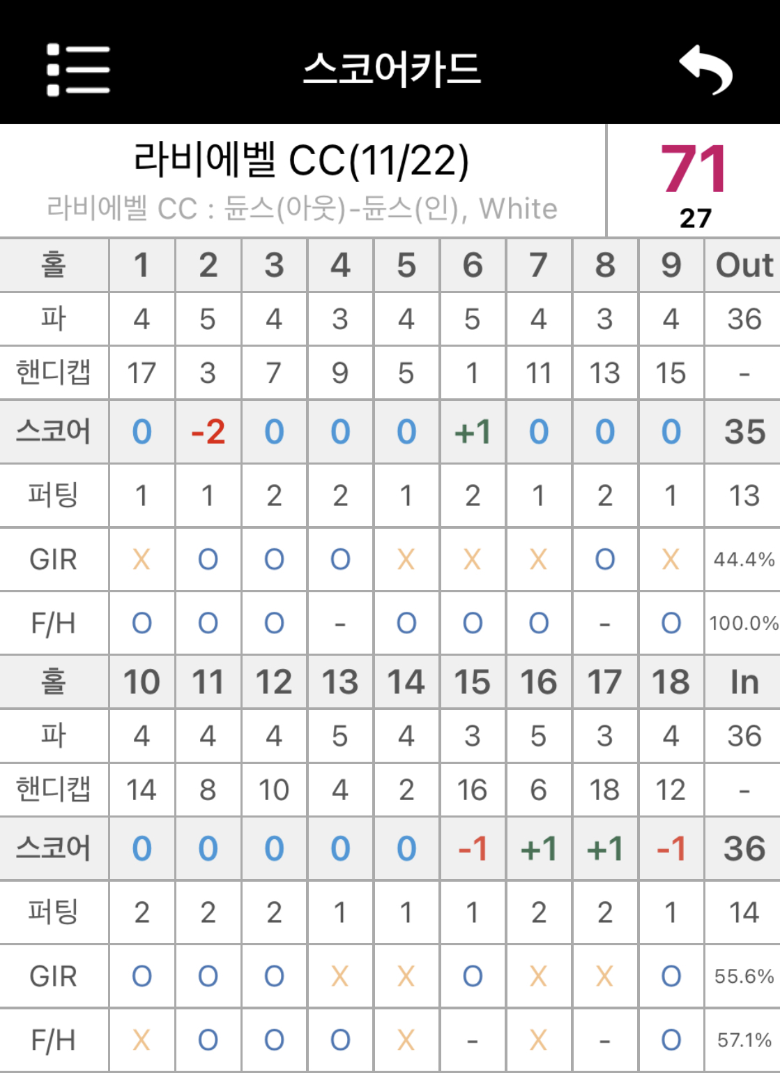 -1(1언더) 쳤네요.