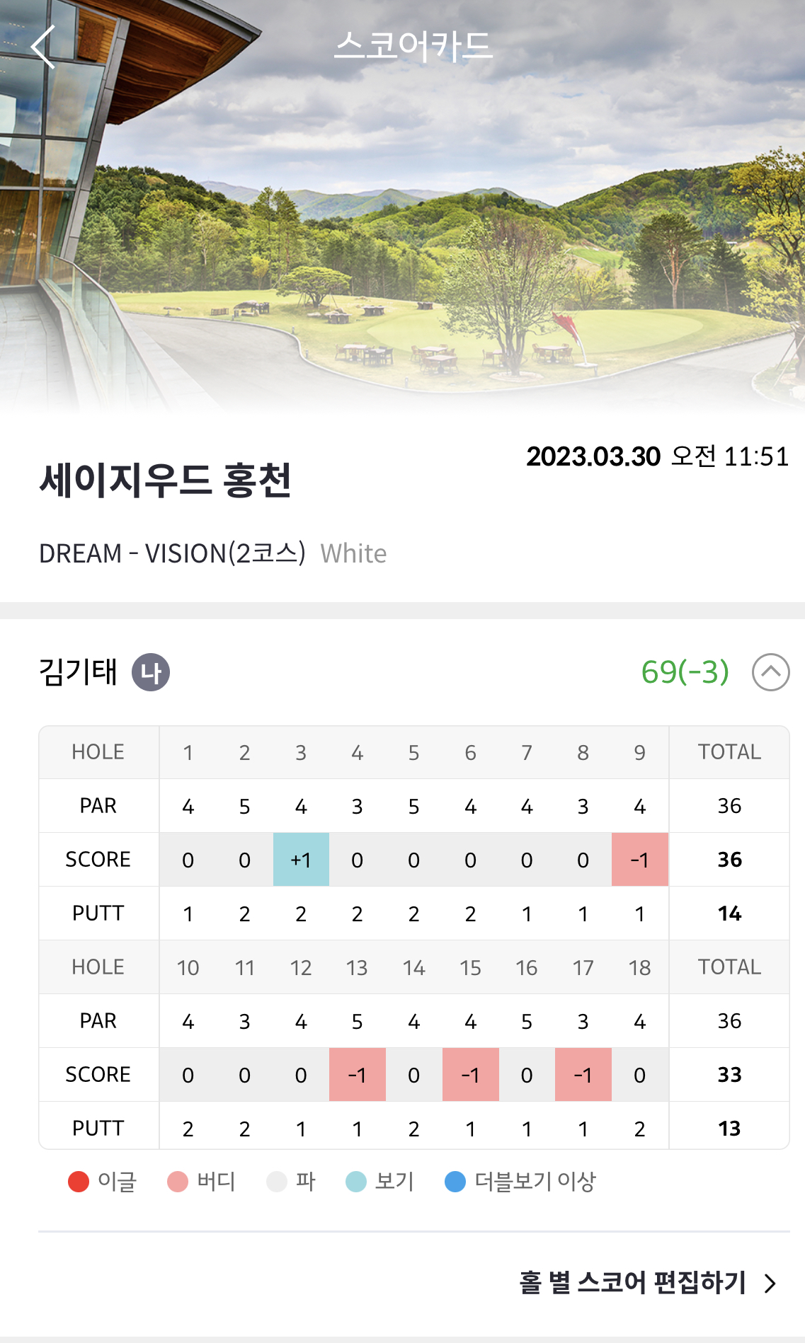 세이지우드홍천(구 블루마운틴CC)에서 기록했어요