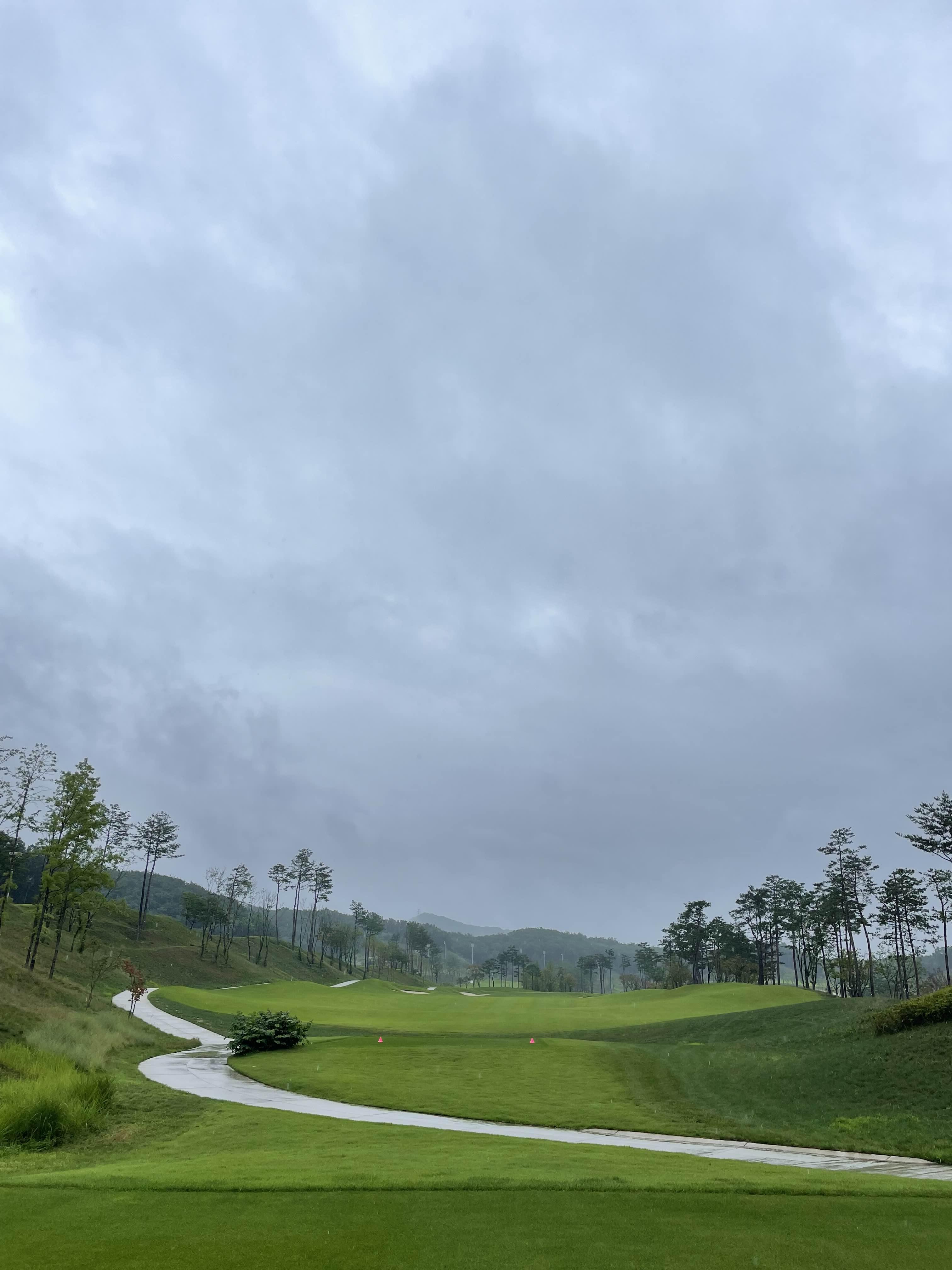 우산 들고 18홀 내내 우중 산책하며 라운드